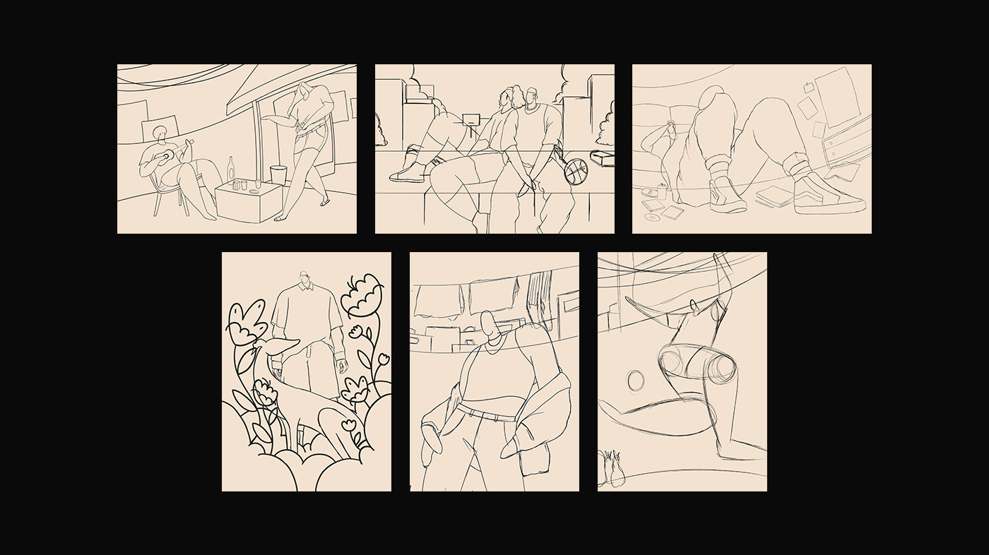 Collection of personal illustrations that I created with different themes, studying scenarios, people and their interactions. People and everyday scenes always fascinate and inspire me.
