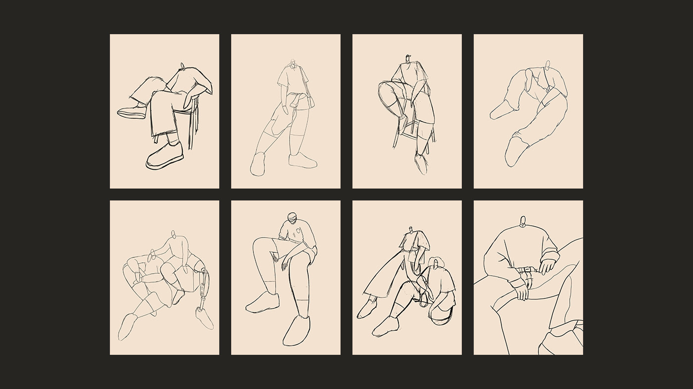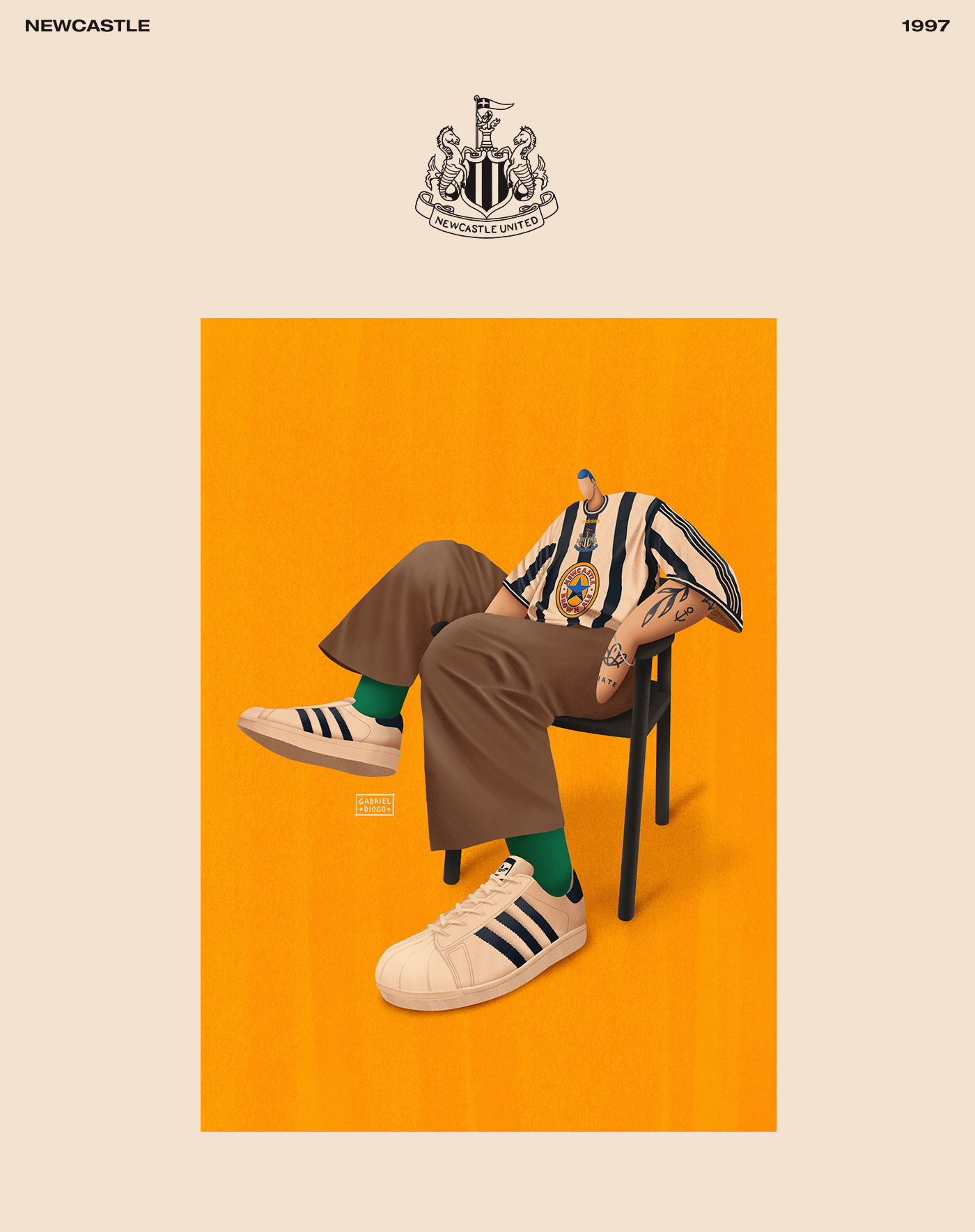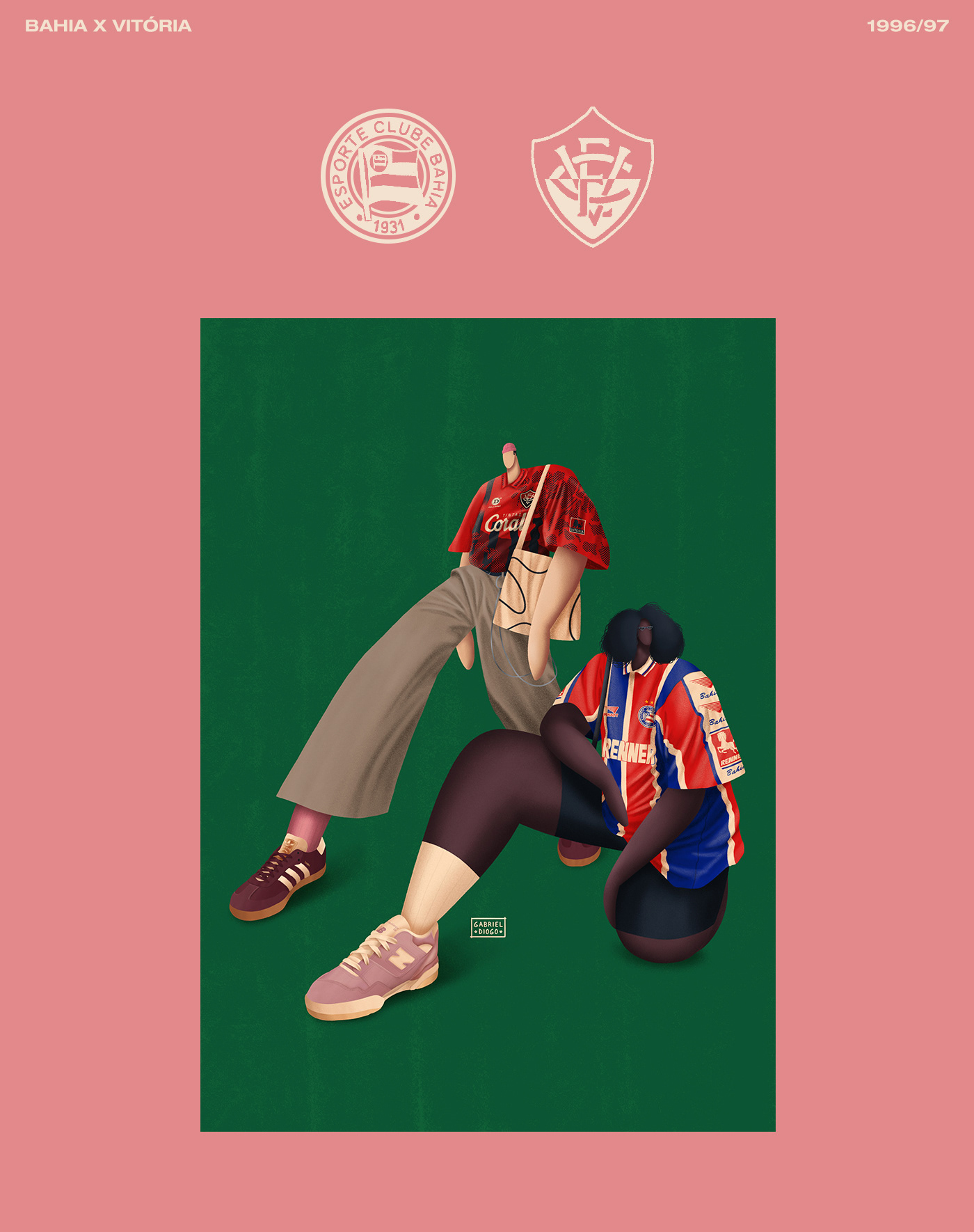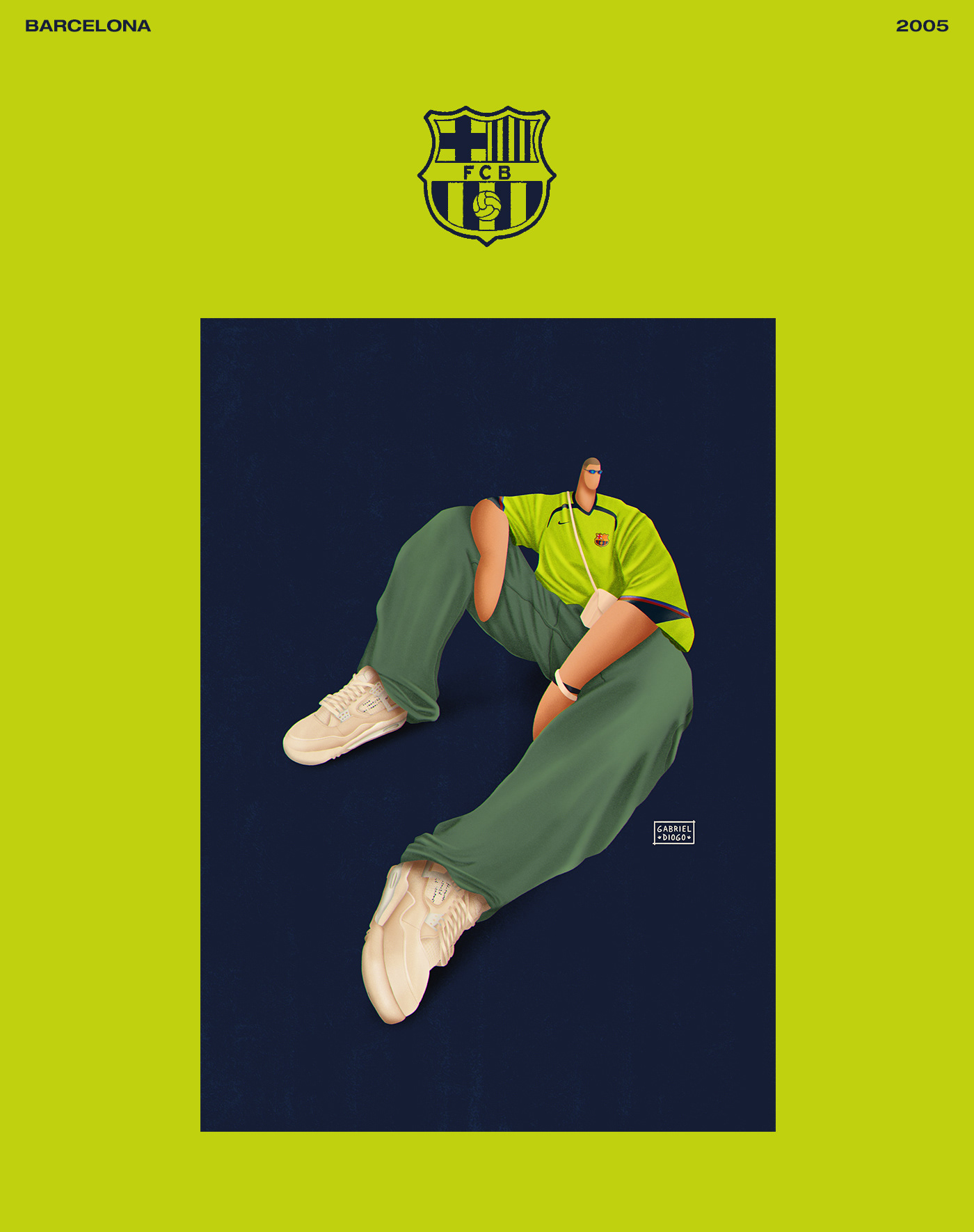 Series of illustrations inspired by Bloke Core, the fashion that combines football shirts with streetwear.