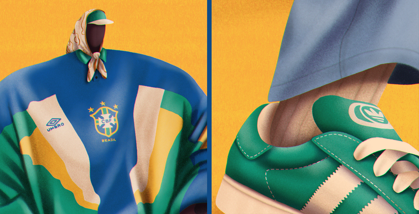 Série de ilustrações inspiradas no Bloke Core, a moda que une camisas de futebol ao streetwear.